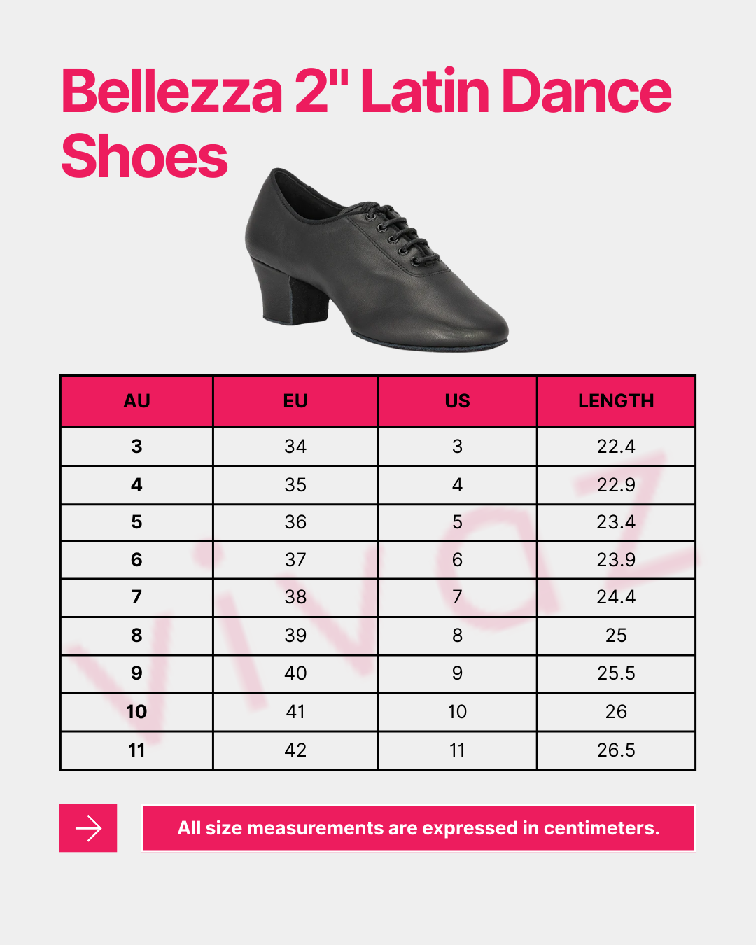 Bellezza is the perfect practice shoe, offering comfort, flexibility, and support to help refine your technique with ease. Featuring a 2-inch Cuban heel, it helps maintain proper dance posture, while the split suede sole allows for maximum flexibility and movement.