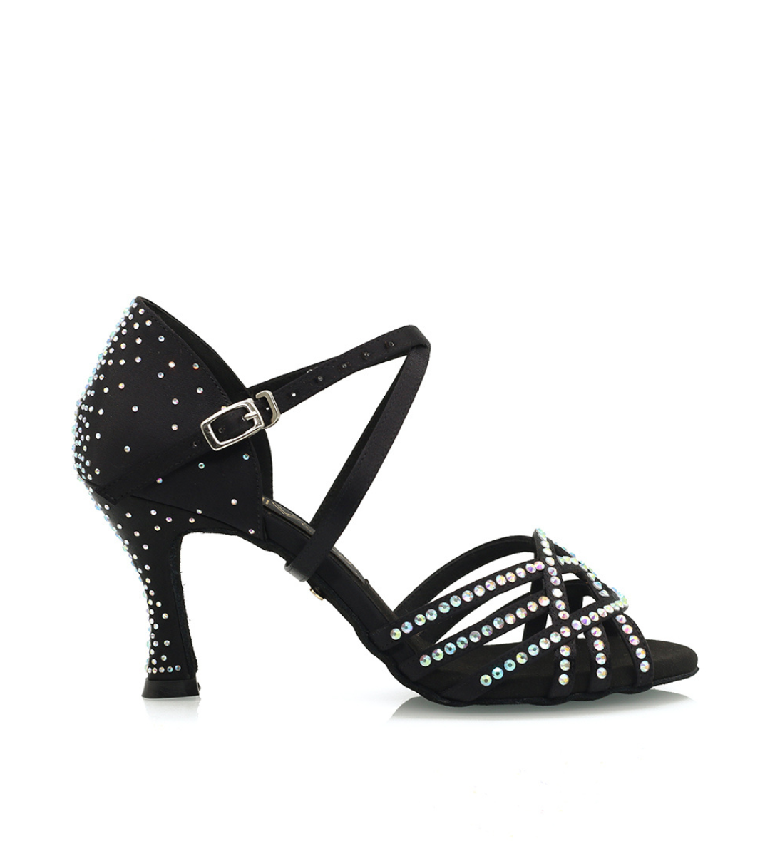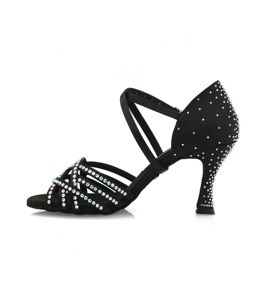 The Sage Latin Dance Shoes offer a striking and unique design, making them perfect for both novice and professional dancers. Featuring a 3" flared heel, these Latin dance shoes combine flexibility, durability, and stability with every step. Crafted with a lightweight satin upper and stunning crystal details, Sage ensures comfort and control through its cushioned, shock-absorbent interior and advanced ventilation technology.