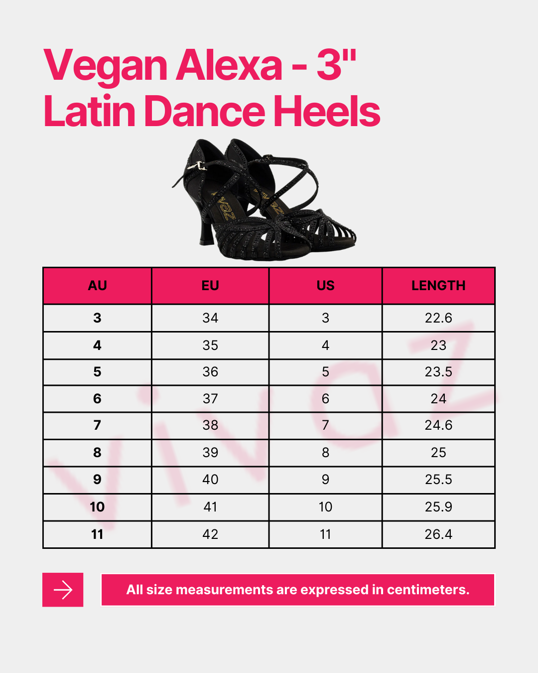 Vegan Alexa is a unique and stylish Latin dance shoe, designed to be a classic addition to your dance wardrobe. Suitable for all Latin, ballroom, and other dance styles where a suede sole is preferred, Alexa combines elegance with comfort to keep you dancing for hours. Crafted with vegan materials, this shoe is an ethical and high-performance choice for dancers.